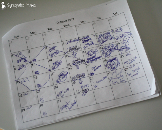 I used to always print out cutesy calendars to use for things like this, but once we started using the one on the white board, I just want something fast and easy next to me.